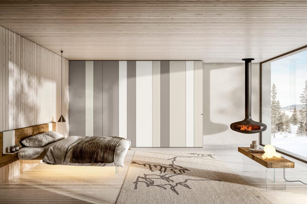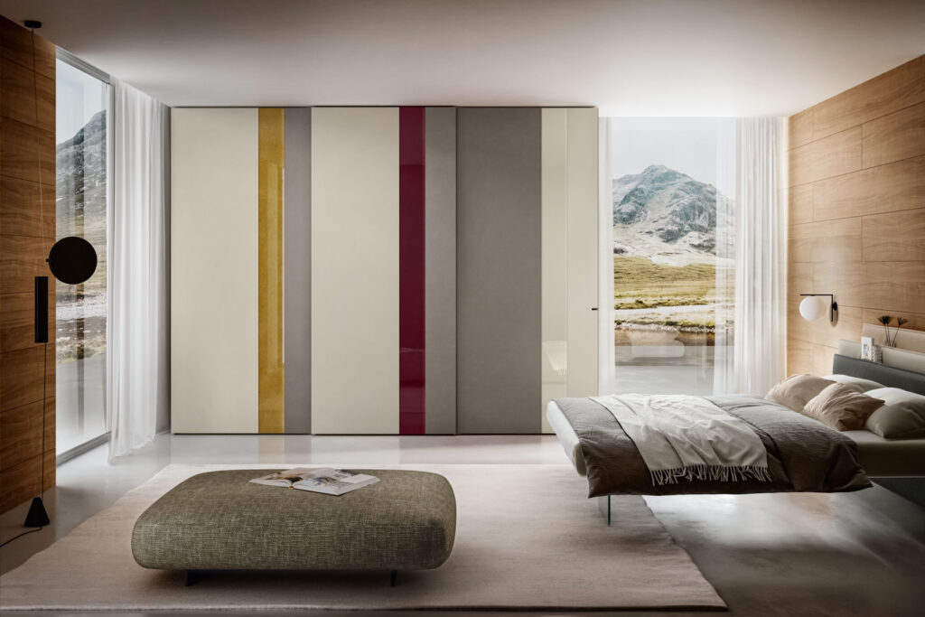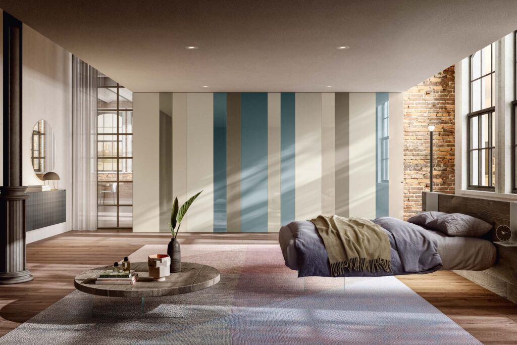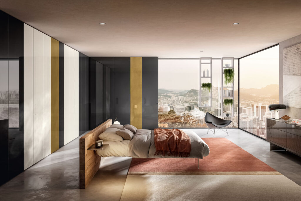 Nei disegni preliminari, simulare l’apertura dell’armadio o di una tenda, consente di non correre il rischio di sbattere continuamente allo spigolo del letto o di non riuscire a passare quando l’anta è aperta.