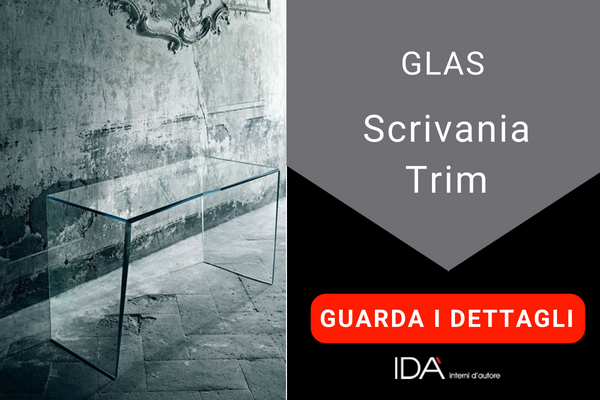 Sulla scrivania, ti diamo un suggerimento. Se ti piace lo stile moderno e il vetro, potrai andare sul sicuro con la scrivania Trim di Glas, dalle linee semplici e dalla forma irregolare.